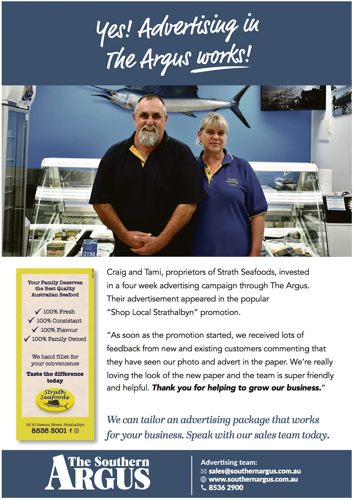 The Argus also brought home Best House Advertisement by way of a strong testimonial from Strath Seafood.